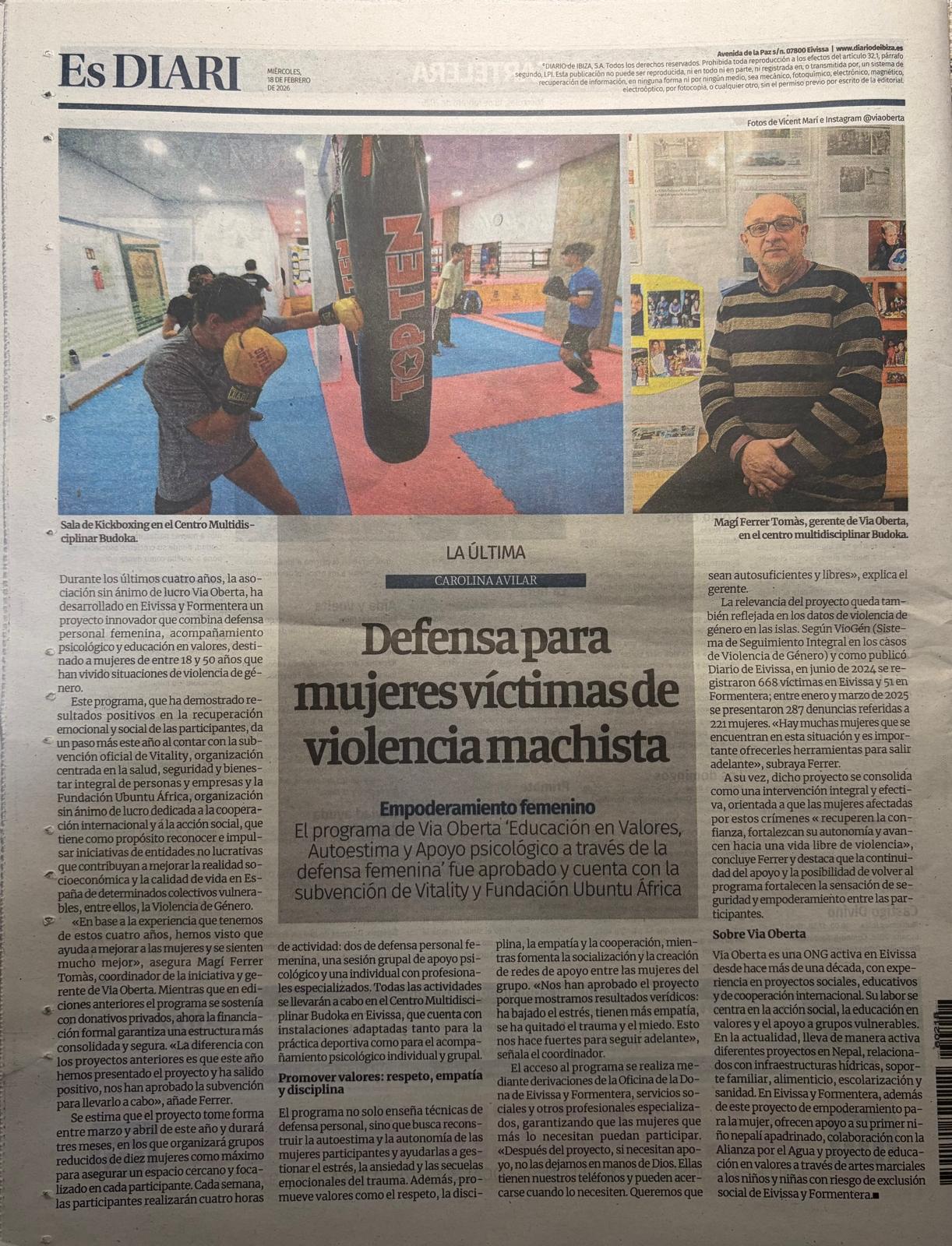 Hoy 18 de febrero de 2026, el Diario de Ibiza se hace eco del proyecto de Via Oberta para el empoderamiento de mujeres víctimas de violencia de género.